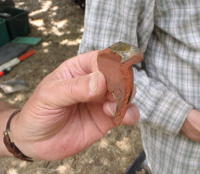 There was a modest amount of pottery, including a small cooking pot with green mottled glaze on the rim (pictured), and part of the base of a 'pipkin' -- a small cooking pot with tripod legs -- excitingly this still had a sooty base from the final time it had a fire lit beneath it, at least three centuries ago!