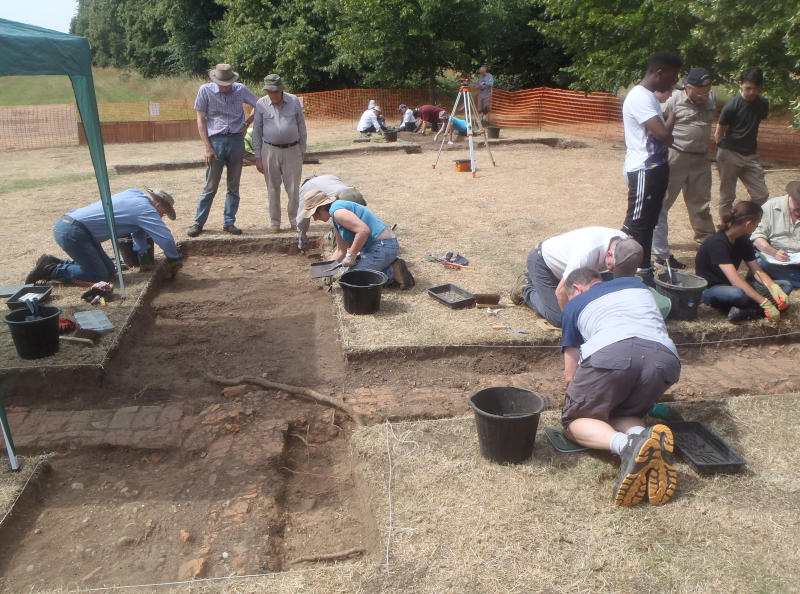 Today we opened an extension to trench 2, which yesterday revealed a long stretch of the 'Long Barn' - a building which forms part of the south side of the outer Tudor palace courtyard, and we have seen parts of over several years.
